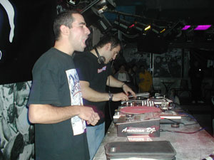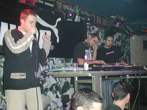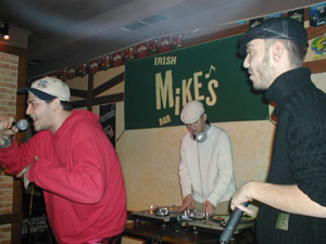 Λίγες ώρες αργότερα, στους Αμπελόκηπους οι Σκιές είχαν το δικό τους live σε μαγαζί και κοινό που δεν έμοιαζε καθόλου με hip-hop. Ζήτημα αν ήταν 10-15 ραπάδες εκεί, οι περισσότεροι ήταν θαμώνες του Bar. Οι Σκιές βγήκαν και αυτοί με μεγάλη καθυστέρηση (αν και αυτό μας βόλεψε για να προλάβουμε την αρχή), και παρουσίασαν τα καινούρια τους κομμάτια από το "Hey Dj". Σκυτάλη πήρε η Χριστίνα που ερμήνευσε γνωστές R''n''B επιτυχίες. Guest της βραδιάς ήταν και ο Τάκη Τσάν με τον Μηδενιστή, οι οποίοι ανέβηκαν στη σκηνή λίγο αργότερα ύστερα από τις αρχικές διαφωνίες. Έπαιξαν 2 κομμάτια και πρόλαβαν να προκαλέσουν μια αναστάτωση στο μαγαζί που μόνο καλό δεν έκανε στο live. Αρκετοί ήταν αυτοί που αποχώρησαν (ανάμεσά τους και εμείς), και γενικά η βραδυά ήταν επεισοδιακή. Κρίμα που ξεκινούν τέτοια σκηνικά από το τίποτα και ουσιαστικά δρουν κατά του συγκροτήματος που εμφανίζεται. Να πούμε ότι το site των Σκιών είναι ενεργό: skies.gr