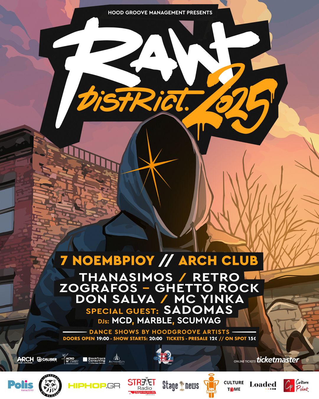 Η Hoodgroove κλείνει 10 χρόνια ζωής και το γιορτάζει όπως της αξίζει: με ένα μεγάλο urban event στην καρδιά της Αθήνας. Έτσι γεννήθηκε το πρώτο “Raw District” την Παρασκευή 7 Νοεμβρίου 2025 στο Arch Club Live Stage, φέρνει στη σκηνή εμβληματικά ονόματα της Hip-Hop σκηνής, κορυφαία D.J. acts, αυθεντικά cyphers με B.Boys και B.Girls, και μια ατμόσφαιρα καθαρής street ενέργειας. Μια νύχτα που δεν τιμά απλώς την πορεία της Hoodgroove, αλλά όλη την κοινότητα που τη στηρίζει, την χτίζει και την τιμά καθημερινά.